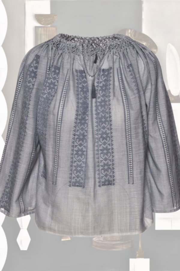 One of the finest exemplars of the traditional Romanian blouse can be found in the southern area of Romania and is exclusively hand-woven on the wooden loom.