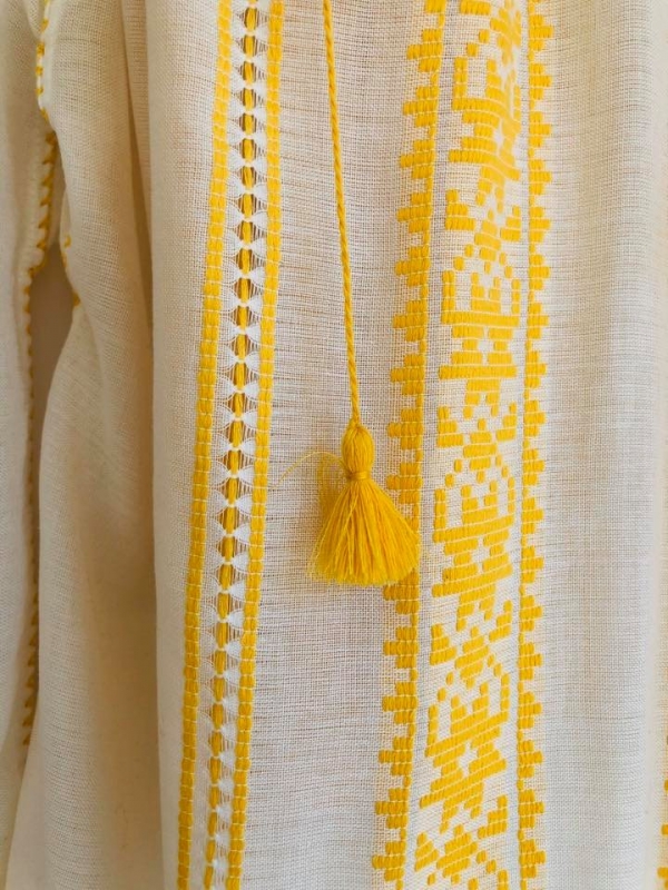 Handwoven Traditional Romanian Blouse White with Yellow Embroidery