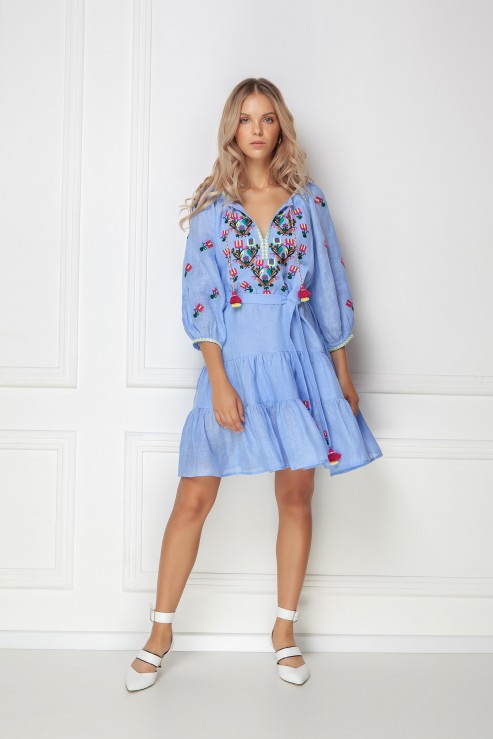 • The bottom of the dress is complemented by embroidered flounces, has pockets in the side seams.