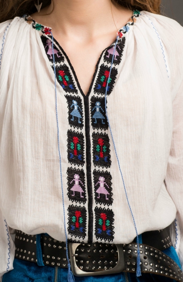 The blouse is handmade by Transylvania craftsmen. Embroidery designs can identify a region of the country or contain a special meaning - while decorative, they are also symbols of cultural beliefs and heritage.