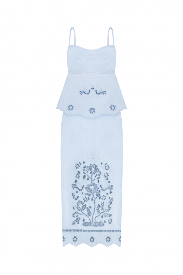 An elegant skirt adorned with the Tree of Life motif, created using the hand-cut embroidery technique. The Tree of Life symbolizes the inexhaustible force that gives birth to all living things — an eternal, self-renewing energy. It reminds us that every day we bloom and take root, giving rise to something new. A skirt that creates a delicate and refined image, emphasizing your femininity.