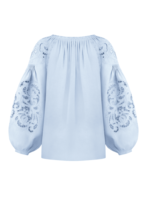 Bluza brodata manual in tehnica decupajului Richelieu bleu
