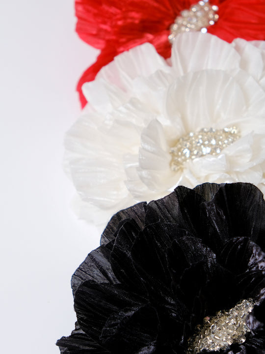 O expresie a stilului și rafinamentului, această broșă volumetrică adaugă un plus de eleganță oricărei ținute. Realizată din petale de crepon satinat și mărgele de sticlă, este perfectă pentru cămăși, sacouri sau rochii.