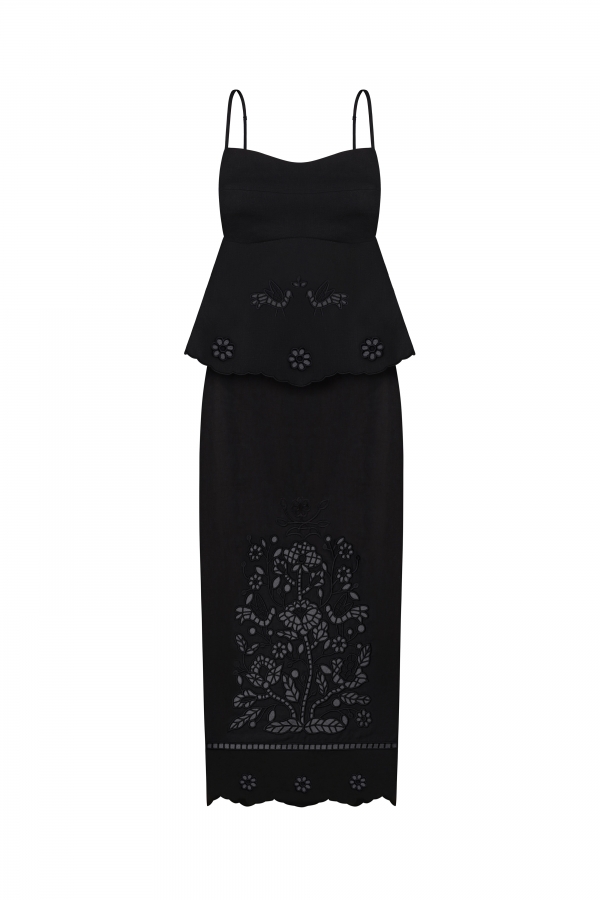 O fustă elegantă, decorată cu motivul Arborele Vieții, realizat prin tehnica de broderie tăiată manual. Arborele vieții simbolizează forța inepuizabilă care dă naștere tuturor lucrurilor vii — o energie eternă, regeneratoare. Ne amintește că în fiecare zi înflorim și prindem rădăcini, dând naștere la ceva nou. O fustă care creează o imagine delicată și rafinată, accentuând feminitatea ta.