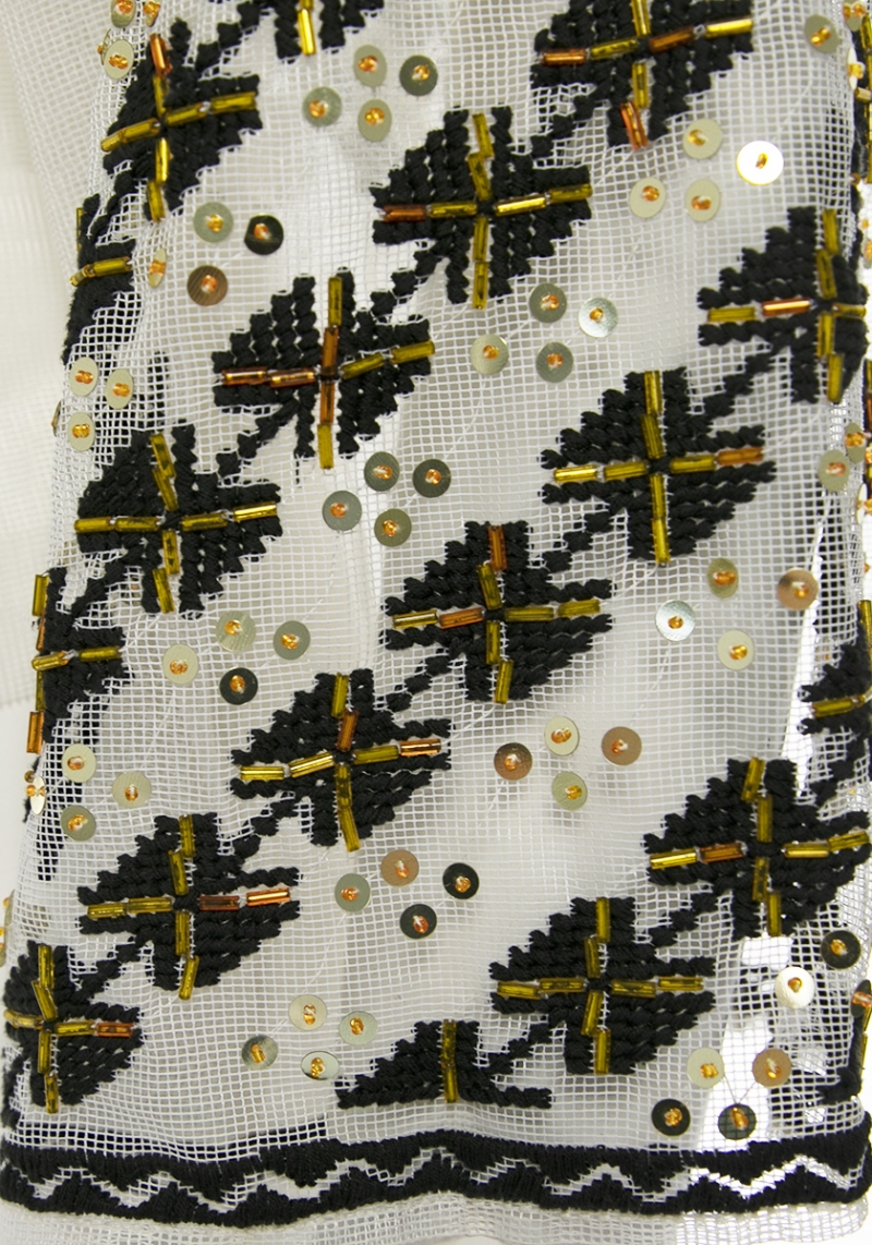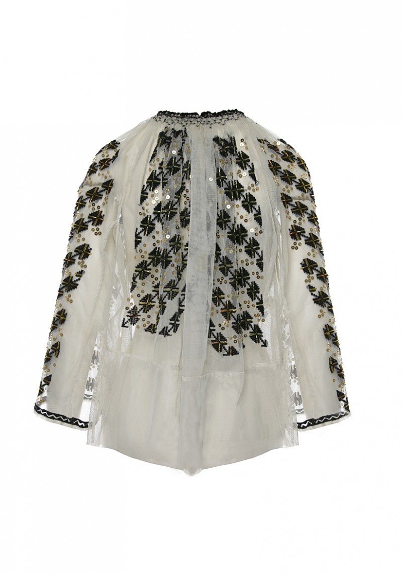 Ie romaneasca pe tulle brodata manual cu margele si strasuri Vintage 10